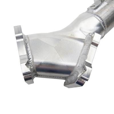 It's not required to remove the turbocharger to install this kit, so it can be done if you're doing performance tuning as well. You will also find this high-flow three-inch bridge included in our upgraded turbocharger kits. If you're doing an S300, S400 style upgraded single charger or our S400 over-stock style compound kit, you'll have this same high-flow Y bridge in that turbo kit.