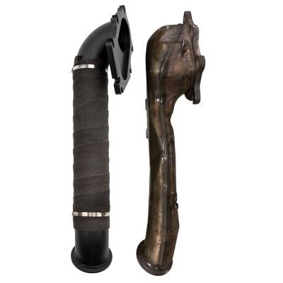 3" LB7 Turbo Downpipe for use with OEM charger or Stealth series Drop in. High Temp Coated and Heat Wrap included. Compatible with both Standard & California Style Exhaust Flange.