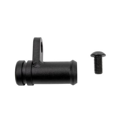 Coolant Relocation Bypass Fitting for LMM Duramax. Located on the Driver Side of the rear engine adapter plate the OEM coolant fitting interferes when installing aftermarket up pipes or manifolds/up pipe kits. This Fitting routes the line for better clearance. No tuning required.