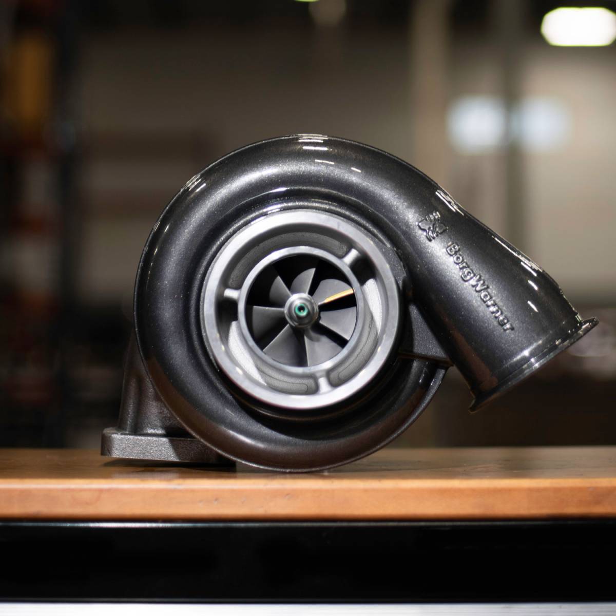 Borg Warner S475 Cast Wheel (75mm compressor) Turbo with 96/88mm Turbine and T6 1.15 AR Exhaust Housing which offers quicker spool up than the standard 1.32 AR housing.