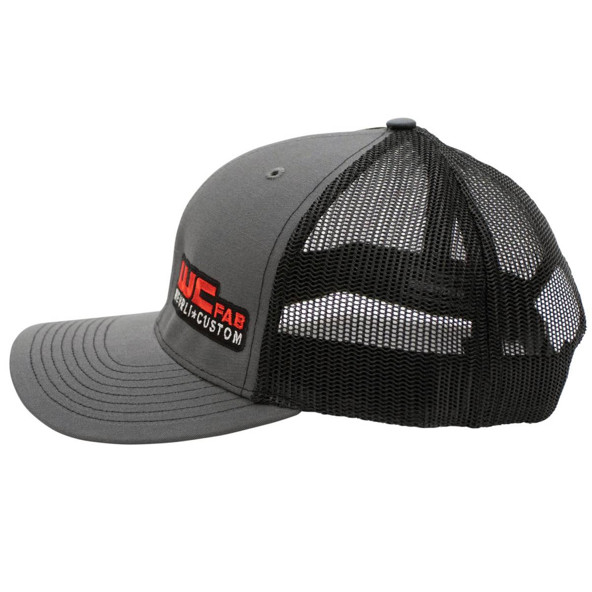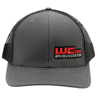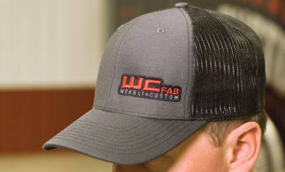 Snap Back Hat with Mesh back. Charcoal bill and Black back Color, embroidered WCFab Logo.