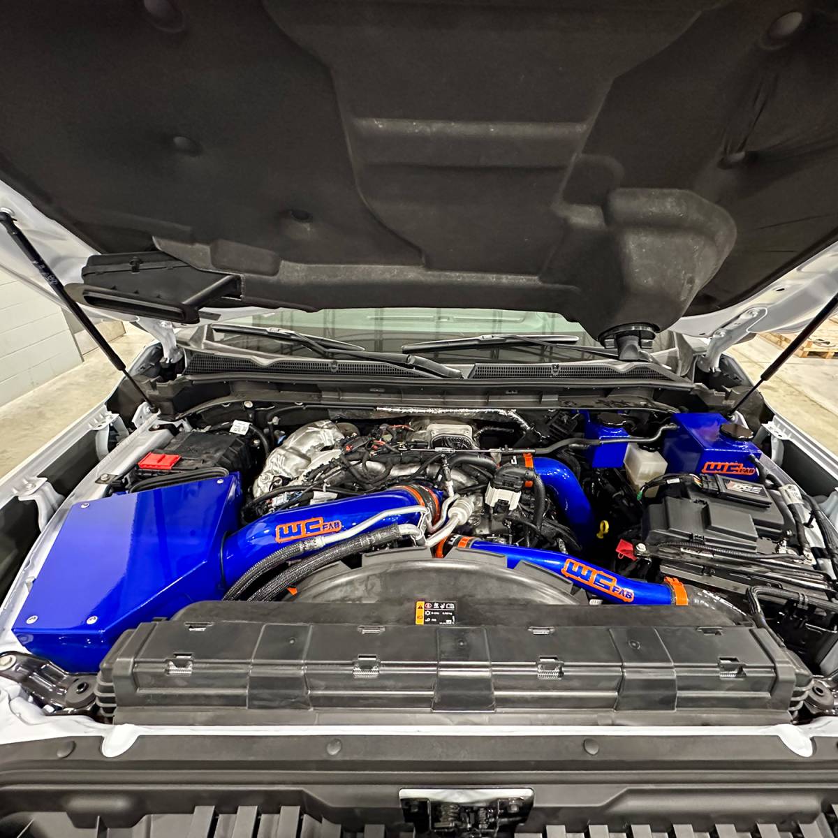 And then lastly, we have our WCFab Gray here for the 2020 to current model year L5P. The 2020 to current is shaped slightly differently than the previous model year. L5P uses our custom-formed silicone boot shown here. So, from 2011 to the present, all coolant pipes come standard with our WCFAB logo.
