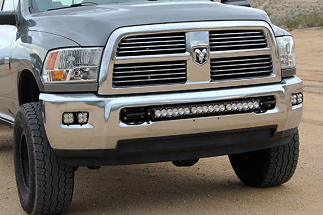 Baja Designs OEM mount kit allows for easy installation of our 30" OnX6 or 30" S8 LED Light Bar between the tow hooks of any 03-18 Ram 2500/3500. These mounts require absolutely no cutting or modification to mount to your truck. These brackets are CNC Laser cut and are powdercoated Satin Black. 100% Made in the USA.