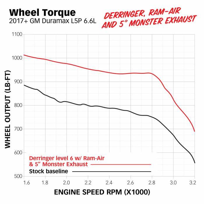 Add an additional +20 hp to your 2017-2019 Duramax. Or, combine with the Derringer inline tuner for a total gain of 81 hp. Beats stock and the competition. New over-sized filter element, largest in its class, protects engine and outflows competition. Enclosed housing keeps out hot, power-robbing engine air. More airflow increases the air-fuel ratio allowing the engine to run more lean, reducing soot output, decreasing the frequency between regens.