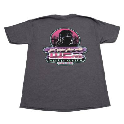 Limited Edition Get Your Flow T-Shirt. 100% cotton, grey t-shirt screened in teal, pink and purple. Business in the front, party in the back! This shirt features a retro version of our logo on the front and a mullet and corn outline on the back.