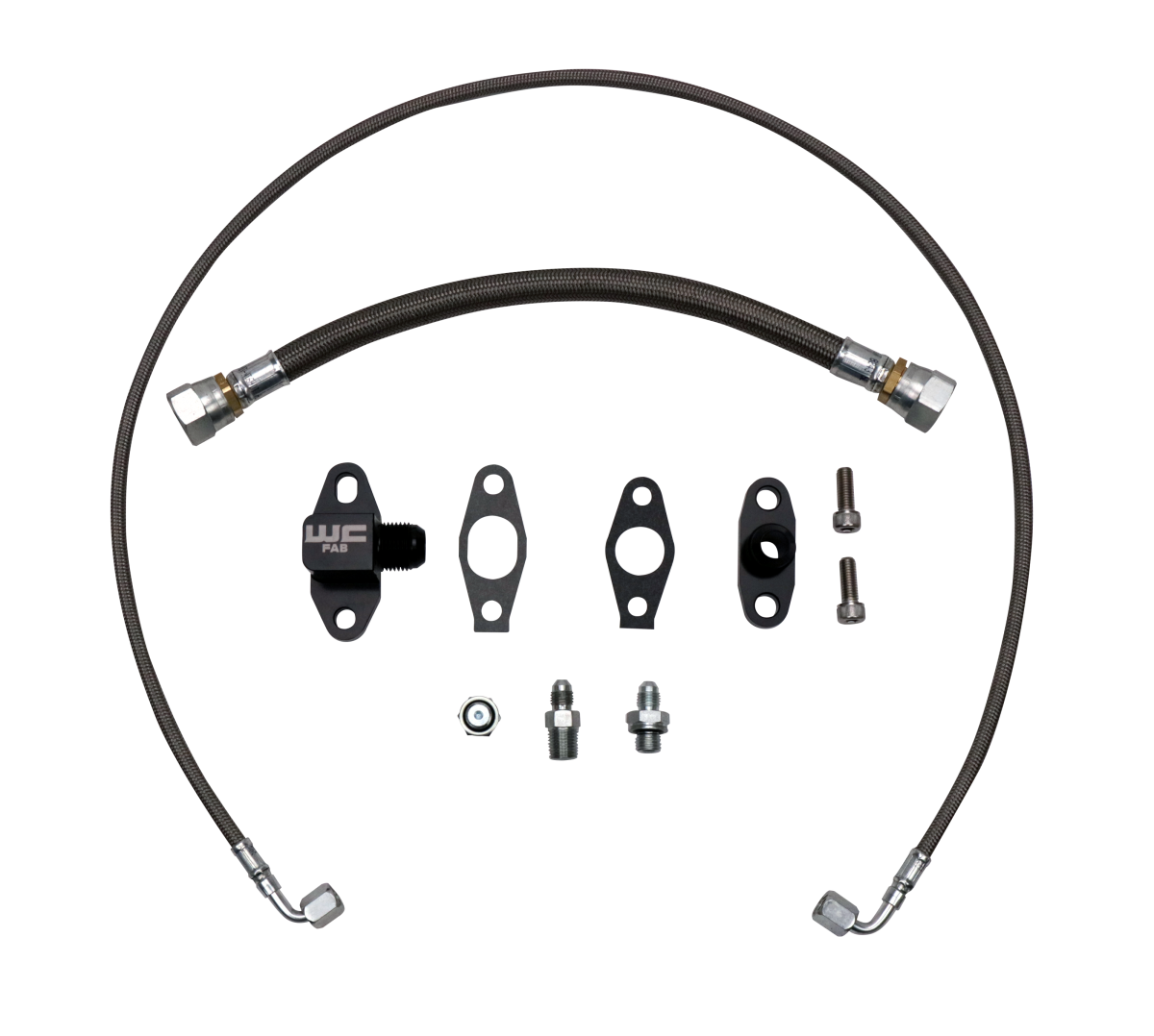 Complete Oil Line Kit for LLY/LBZ/LMM/LML Duramax with S300 Turbo mounted on 5" tall pedestal.