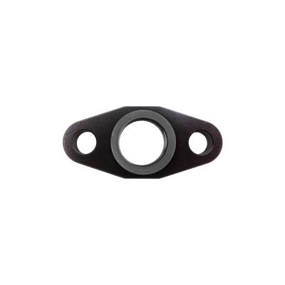 Black Anodized Billet Aluminum Turbo Drain Flange with #10AN Extended Drain Tube lowers the threaded connection of the oil drain line from the turbo drain port for easier access with wrench for installation. Our adapter flange to the turbo center section incorporates a reusable O-Ring seal, so no more dealing with leaking or torn paper sealing gaskets at the connection to the turbo center section. Fits any turbo drain with a 2" on center bolt mounting.