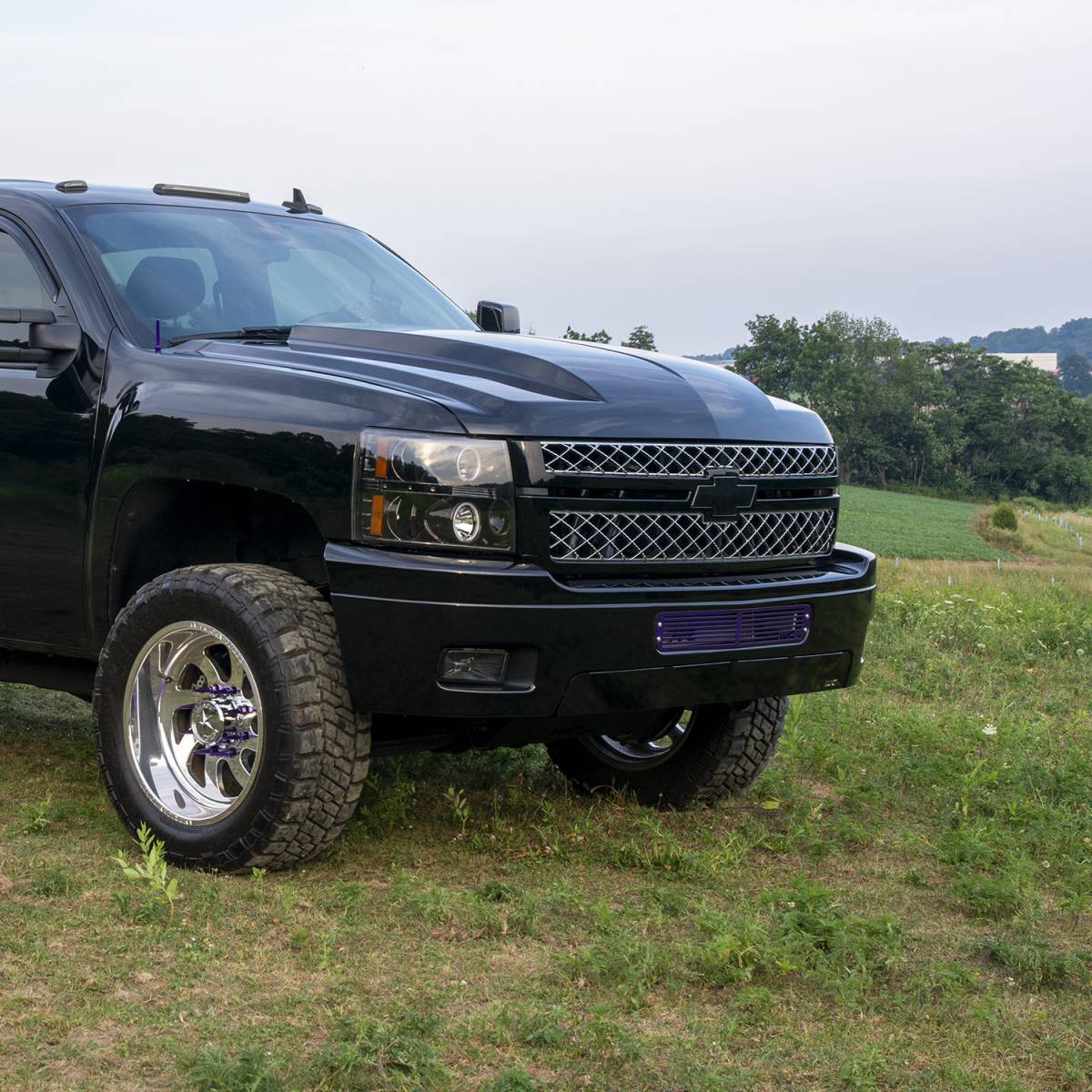Removing the OEM plastic lower bumper valance on the 2011-2014 Chevrolet Silverado 2500 / 3500 HD trucks is a proven method for improving ground clearance and fitting more aggressive wheel and tire combinations, but leaves an unattractive, gaping void in the lower middle section of the bumper.