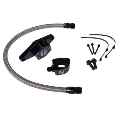 Complete kit comes with braided hose and AN O-ring fittings to ensure a leak-free installation. Kits for MY 2003+ include billet hose brackets.
