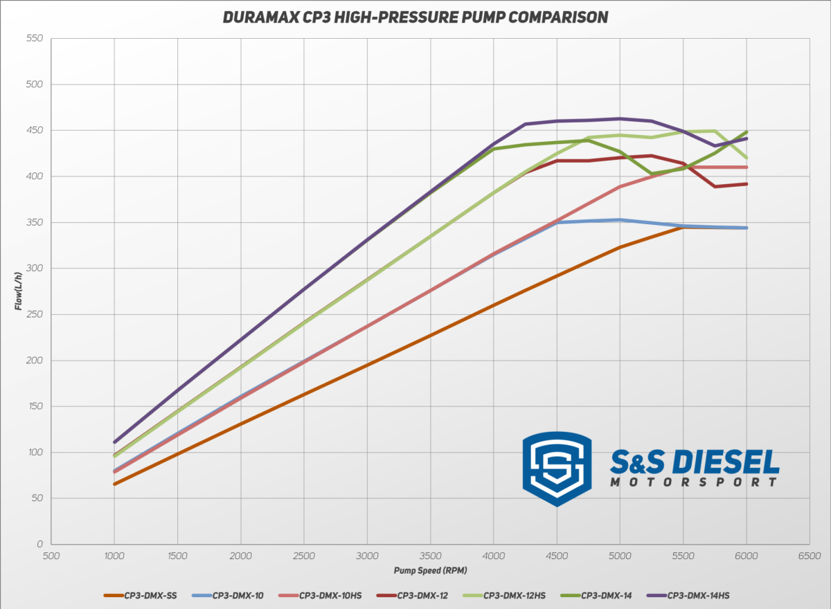 S&S® Modified 12mm CP3 Injection Pump is recommended for applications up to 1,000HP on 2001-2016 Duramax High RPM applications. For best performance use a 150 GPH or higher lift pump. This high speed optimized, modified CP3 offers fueling capabilities up to 5,500 RPM, where a stock CP3 falls off at 3,000 RPM. Based off of an LBZ Pump and comes standard with an LBZ FPR. Custom tuning is required. No Core Fee.