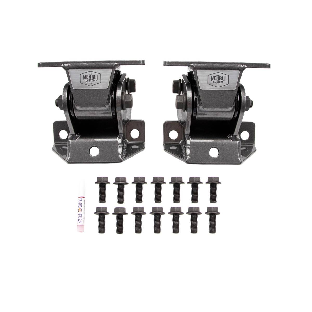 Kit includes left and right Duramax engine mounts, high grade fasteners, and thread locker for installation, finished in your choice of powder coat color.