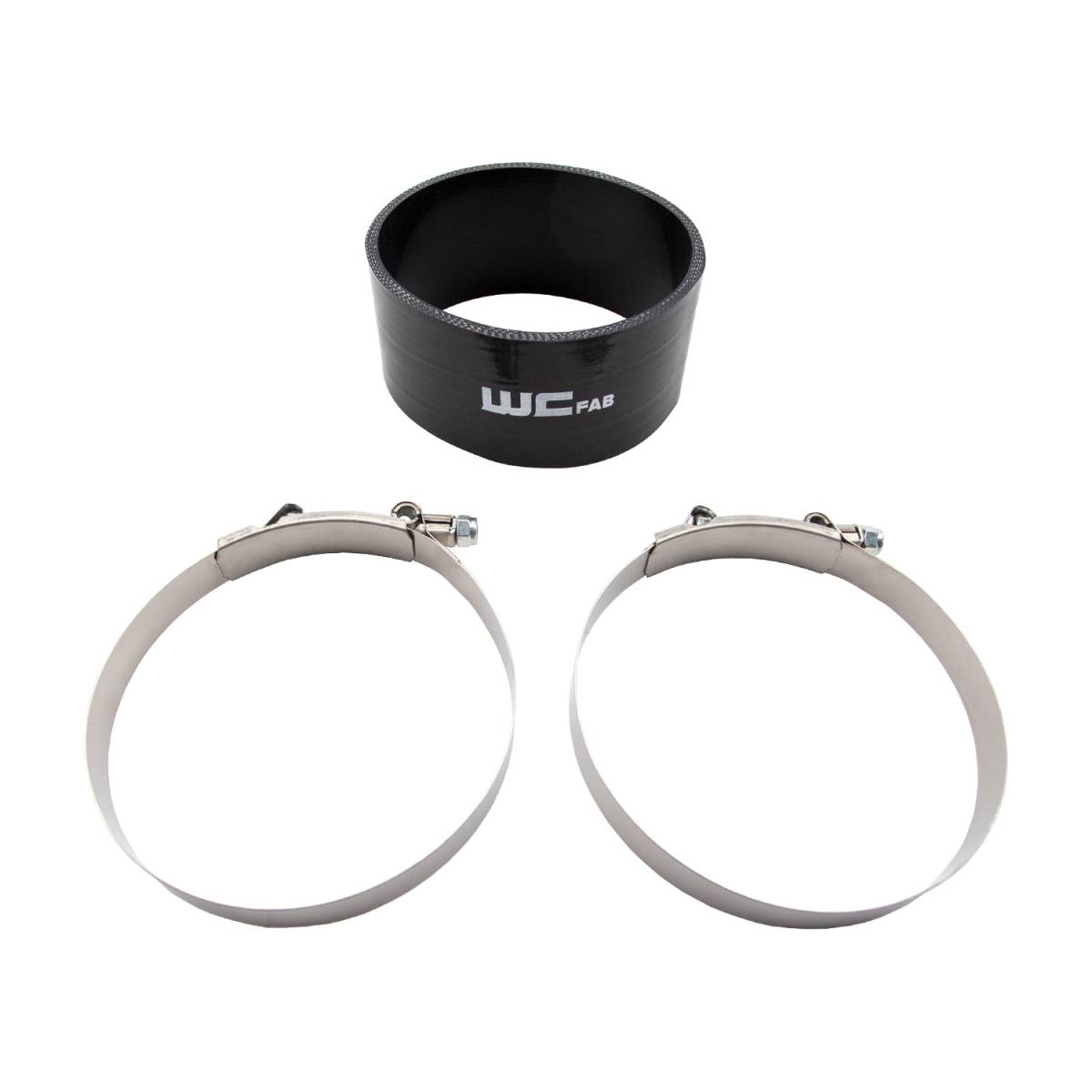 Contains one 5" ID x 2.5" Boot with Logo and two 5" T-Bolt Clamps.