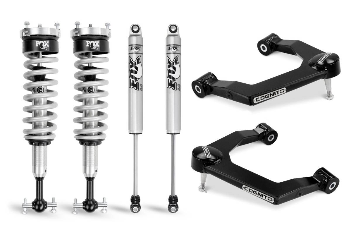 Cognito components are engineered, manufactured and assembled in the USA. The Cognito 3 Inch Performance Ball Joint Leveling Kit includes the Cognito Ball Joint SM Series Upper Control Arm Kit, Fox Performance Series Coilover front shocks and Fox Performance Series Monotube rear shocks- all with hardware included.