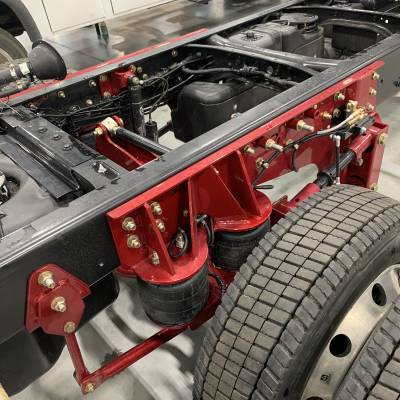 The Silverado 4500/5500/6500 trucks are the long-overdue option from GM for the heavy-duty truck market. If you are looking to upgrade the factory leaf spring suspension then look no further than Kelderman's time-tested 4-Link Rear Air Suspension System. This kit features a four airbag design (two per side) to provide a better all-around suspension system for your work truck. Air suspension can provide you with softer ride quality and you will no longer experience the harsh rebound of a stiff leaf spring suspension. This kit also comes with four adjustable trailing arms to allow you to center your rear axle properly within a service body, truck box, etc. These will keep the rear end in place along with an adjustable panhard bar setup that prevents side-to-side movement when going down the road.