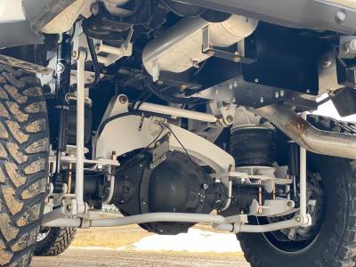 Heavy-duty trucks need heavy-duty suspension. Now you can have the capability of heavy-duty suspension without a heavy-duty ride quality with a Kelderman 5-6" 4-Link Rear Air Suspension. This kit removes your existing leaf springs and converts it entirely over to the air ride. With the help of Industrial airbags, your Ram will now have a smooth ride quality and an increased capacity, both better than stock! This kit will provide upper and lower air bag mounting brackets, airbags, axle clamps, adjustable trailing arms, adjustable panhard bar with heim ends, larger rear sway bar, sway bar end links, and rear crossmember. Shocks and air controls will be sold separately, as well as the 5-6" Front Air Suspension Lift Kit. Use this with our 5-6" Front Air Suspension Lift Kit and the Air Lift 3H Air Control System and you can raise & lower your truck at the push of a button. With no air in the system, the truck will drop down to about a 1" lift to make it easy to get in & out of your truck, park in your garage, load items in the bed, and hook up to trailers. Re-inflate the truck to the 5-6" 'ride height' setting for an unbeatable ride quality while driving down the road. Want to show off what your truck can do? This kit can go up to a 9" lift when fully inflated! Designed for use with 37" tires, this kit is THE BEST option for your suspension needs.