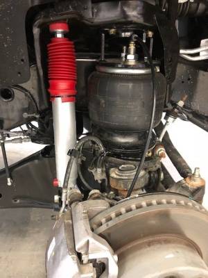 The Kelderman 2-Stage Front Air Suspension System replaces the factory coil spring suspension on your Ram HD 4x4 truck with an industrial-strength airbag and shocks to boost the carrying capacity of your Ram's front suspension while improving the ride of the truck. This 2-Stage Front Air Suspension System includes Rancho 9000 adjustable shocks to allow you to change the valving in the shock to get your Ram riding just how you want it. These systems work perfectly for trucks equipped with heavy front bumpers, snowplows, winches, and many other accessories. Don't let your truck continue to sag upfront because the factory coil spring just can't cut it.