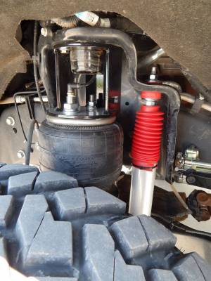 The Kelderman 2-Stage Front Air Suspension is an excellent addition to any truck running one of our rear air suspension systems or by itself. This kit consists of upper and lower air bag mounting plates, industrial strength air bags, Rancho adjustable shocks, and our 'manual fill' air control package. This will allow you to add air to the air bags like you would a regular truck tire. This is a simple, cost effective option on a front only system.