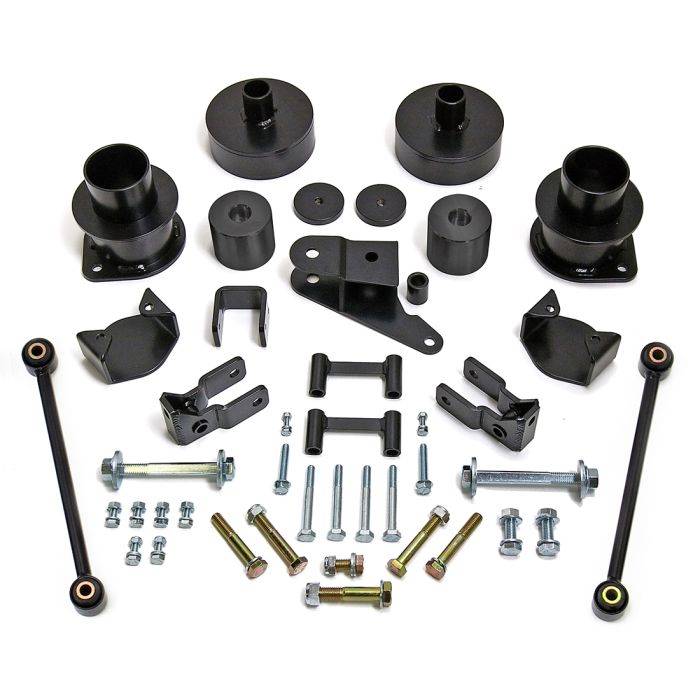 The ReadyLIFT 69-6000 SST Lift Kit will raise the front of your 2007-2018 Jeep JK 3.0" and 2.0" in the rear. Rather than replace your reliable OEM springs or shocks, ReadyLIFT have incorporated their proven spring spacer technology into this comprehensive package which allows you to retain your OEM coil springs which translates into retaining the stock ride quality. You don't need to have to deal with a rough ride from other kits that replace your springs and shocks. This kit has it all and is done RIGHT! Tough powdercoated steel front and rear spring spacers provide the altitude adjustment while our panhard bar relocation bracket and shock extensions work together to keep that factory suspension and alignment geometry. That is very important if you want your Jeep JK to ride and handle properly. ReadyLIFT even developed front and rear bump stop extension brackets and included them in the kit to help maintain the OEM compression travel. This rugged new Jeep SST Lift Kit comes with all necessary hardware and instructions, as well as a Lifetime Limited Warranty on ReadyLIFT products.