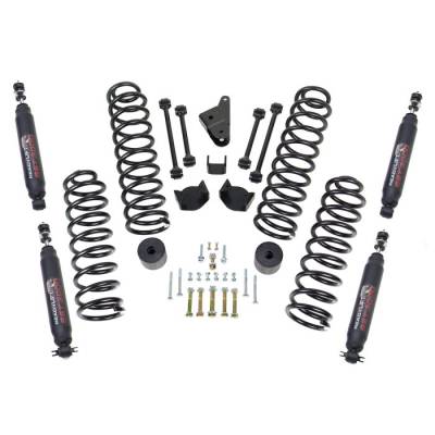 This kit allows you to confidently take your Jeep anywhere you want, on or off road, without sacrificing a quality ride or handling characteristics. The increased ground clearance provides many more off road opportunities than with a stock suspension along with the ability to install larger wheel and tires for the truly great lifted off road appearance!