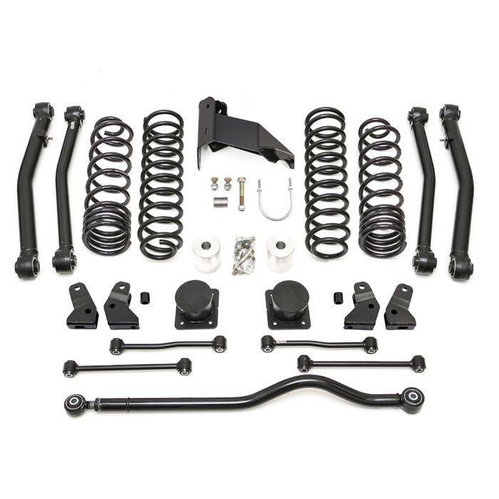 ReadyLIFT now offers a Jeep Gladiator 4" Terrain Flex Lift specifically for the Jeep Gladiator Mojave Edition. This version of the their 4" lift kit is engineered for use with the new Mojave Edition while retaining the factory-equipped FOX 2.5-inch internal bypass shocks that come with external reservoirs and FOX front hydraulic jounce bumpers. The 69-6043 4" Mojave Terrain Flex Lift Kit keeps full use of the FOX equipment while providing a great-riding 4 inches of lift. Terrain Flex 69-6043 includes new heavy-duty shock mount extensions that retain uncompromised use of the factory-equipped FOX shocks in a lifted configuration. The 69-6043 Mojave lift kit features virtually all of the same great components of their popular Jeep Gladiator 4" lift kit including (4) heavy-duty Terrain Flex lower control arms with Terrain Control Technology (TCT) maintenance-free, non-bonded pivot bushings that provide maximum articulation, four-inch lift coil springs, bump stop landing pad extensions, longer sway bar end links and heavy-duty adjustable front track bar. New additions includes a heavy-duty bolt-on rear track bar bracket and Mojave Edition exclusive front and rear shock extensions.