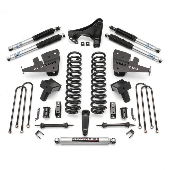 ReadyLIFT offers a 6.5" Lift Kit system made to fit 2017-2022 F250 Ford Super Duty 4WD trucks with a two-piece drive shaft that includes premium Bilstein 5100 series shocks. This 6.5" lift kit gives owners an excellent lift kit option that will raise F250 trucks a total of 6.5" in front. This provides for maximum tire clearance and unbeatable performance. Install up to 38" tall off road tires with no problems. This complete lift kit delivers uncompromised ride and handling performance!