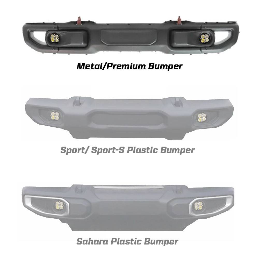 Our JL Rubicon Fog Pocket replacement kit allows enthusiasts to retain factory fit and finish, while taking advantage of premium aftermarket LED output. This kit features a pair of Squadron Sports, which have a combined output of 4,520 lumens.