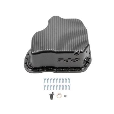 The stock Duramax engine oil pan is made of stamped steel, which offers very poor heat dissipation. This upgraded pan is made from cast A356.0-T6 aluminum for added strength and optimum heat management. The extra quart of capacity provided by this product helps reduce oil temperatures, increase oil pressure, and provide better lubrication to your engine's vital components. Unshrouded oil pickup results in less restriction near the pump than OEM, resulting in higher oil pressure and better lubrication.