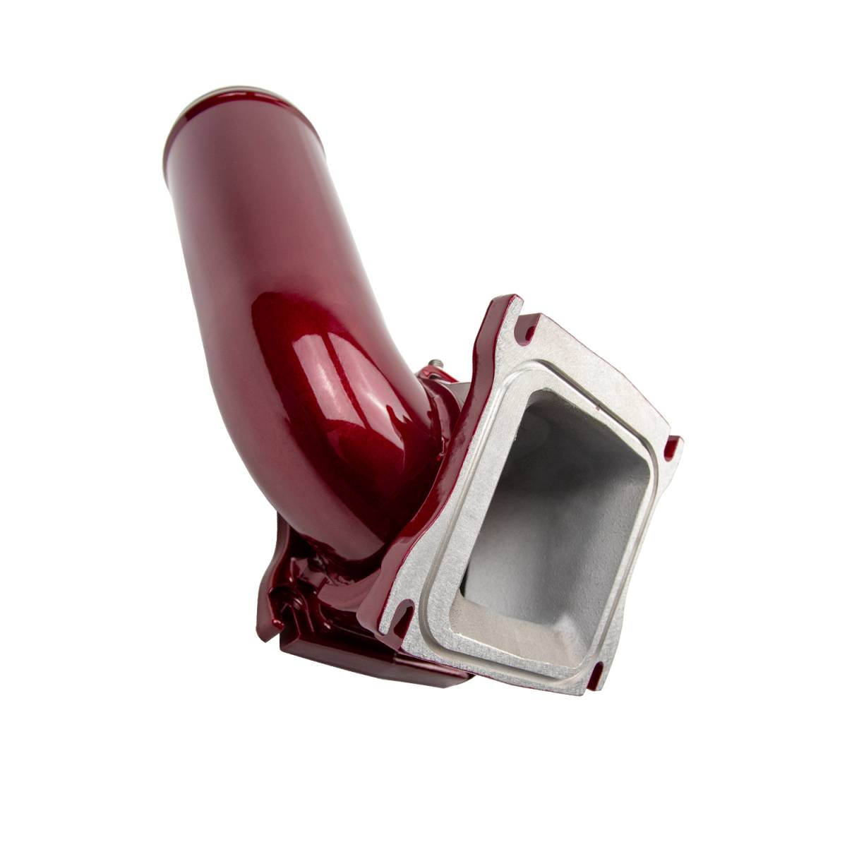 After the turbo, our Stage 2 kit also upgrades the restricted 2.5 in. diameter driver (hot) side intercooler pipe and leak-prone plastic / rubber passenger (cold) side pipe with WCFab's heavy duty 3 in. diameter 1-piece Driver (Hot) Side and 3.5 in. diameter Passenger (Cold) Side LMM Intercooler Pipes. Made in the USA from high strength, heavy duty 14 ga. aluminum tube with smooth, aerodynamic mandrel bends for increased durability and optimized flow. 3 in. Driver Side pipe includes high quality reinforced silicone boots and stainless t-bolt clamps for superior temperature resistance and boost pressure holding capabilities. 3.5" Passenger Side pipe improves air flow over stock part by 47%! Features CNC machined flanges with a double o-ring seals and an upgraded silicone hump boot in order to withstand higher boost pressures than the factory components to increase reliability and eliminate blown factory boots and horsepower robbing boost leaks.