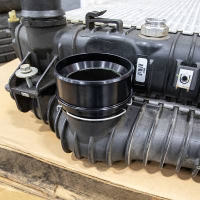NOTE: This part is designed for use with some aftermarket and custom fabricated high flow intercooler piping and turbo kits which are looking to adapt to the stock style intercooler outlet to a 3.5" silicone boot and bead roll joint.