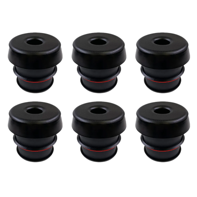 S&B Silicone Body Mounts are a great upgrade for your worn out, cracked, and deteriorated OEM parts for your 2001-2005 Standard Cab LB7 or LLY Duramax (or GM Silverado / Sierra 1500, 2500, 3500 truck). These bushings offer great vibration isolation without the harshness or squeaking commonly associated with urethane style mounts. Restores ride quality to older trucks with aging mounts more cost effectively than a set of stock parts from your local dealer and will last the life of your truck. Cap bushings have a distinct boss feature that matches the slot on the mounting tabs so that they key into the frame tab for an OEM quality fit. All new mounting hardware included.