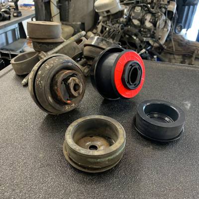 S&B Silicone Body Mounts are a great upgrade for your worn out, cracked, and deteriorated OEM parts for your 2006-2014 Standard Cab LBZ, LMM, or LML Duramax (or GM Silverado / Sierra 1500, 2500, 3500 truck). These bushings offer great vibration isolation without the harshness or squeaking commonly associated with urethane style mounts. Restores ride quality to older trucks with aging mounts more cost effectively than a set of stock parts from your local dealer and will last the life of your truck. Cap bushings have a distinct boss feature that matches the slot on the mounting tabs so that they key into the frame tab for an OEM quality fit. All new mounting hardware included.