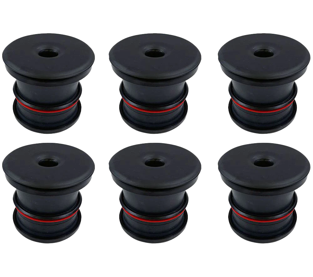 S&B Silicone Body Mounts are a great upgrade for your worn out, cracked, and deteriorated OEM parts for your 2008-2016 Standard Cab 6.4L or 6.7L Power Stroke (or Ford F-250 / F-350 Super Duty truck). These bushings offer great vibration isolation without the harshness or squeaking commonly associated with urethane style mounts. Restores ride quality to older trucks with aging mounts more cost effectively than a set of stock parts from your local dealer and will last the life of your truck. Cap bushings have a distinct boss feature that matches the slot on the mounting tabs so that they key into the frame tab for an OEM quality fit. All new mounting hardware included.
