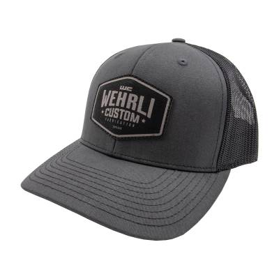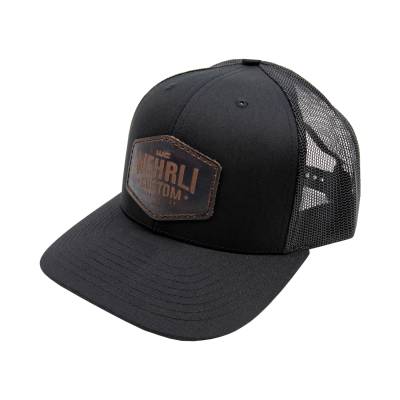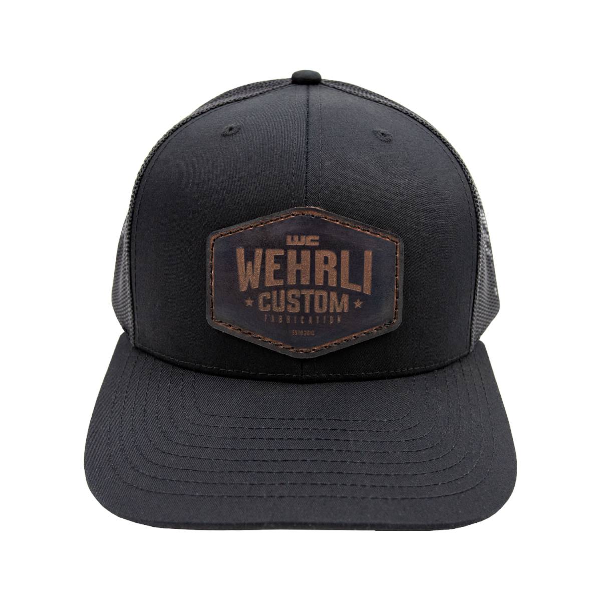Snap Back Hat with Mesh back. Black bill and back color, Black leather WCFab badge logo.