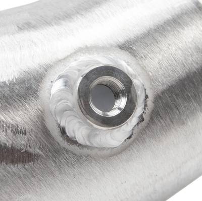 This Billet Aluminum IAT Sensor Bung for 2011-2025 LML and L5P 6.6L Duramax engines features an M10 thread pitch and is CNC machined from 6061-T6 aluminum in DeKalb, IL USA and ready to be welded to your custom aluminum intercooler pipe.