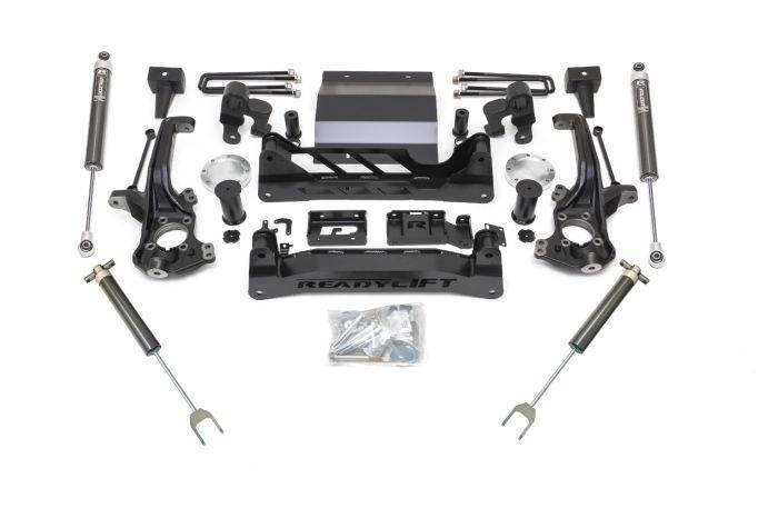 ReadyLift's all-new 44-30620 6" lift kits with ReadyLIFT Falcon 1.1 Monotube shocks are a great option if you want a taller, lifted ride height and the ability to run up to 37" tall tires. The 44-30620 lift kits include laser-cut, fabricated heavy-duty steel cross-members, new cast iron OE-style knuckles with the perfect geometry built-in, torsion arm brackets, and ReadyLift's own front torsion bar relocation brackets that retain the factory position of the torsion bars. These new torsion bar relocation brackets eliminate the traditional lowering of the torsion bars, which can inhibit ground clearance from a lift installation and help to improve the overall driving experience. Additionally, each kit includes crucial differential drop brackets and CV axle spacers, 12" sway bar end links, bump stop extensions, OE style cast iron rear lift blocks, heavy-duty steel skid plate, and finally, Falcon 1.1 Monotube shocks.