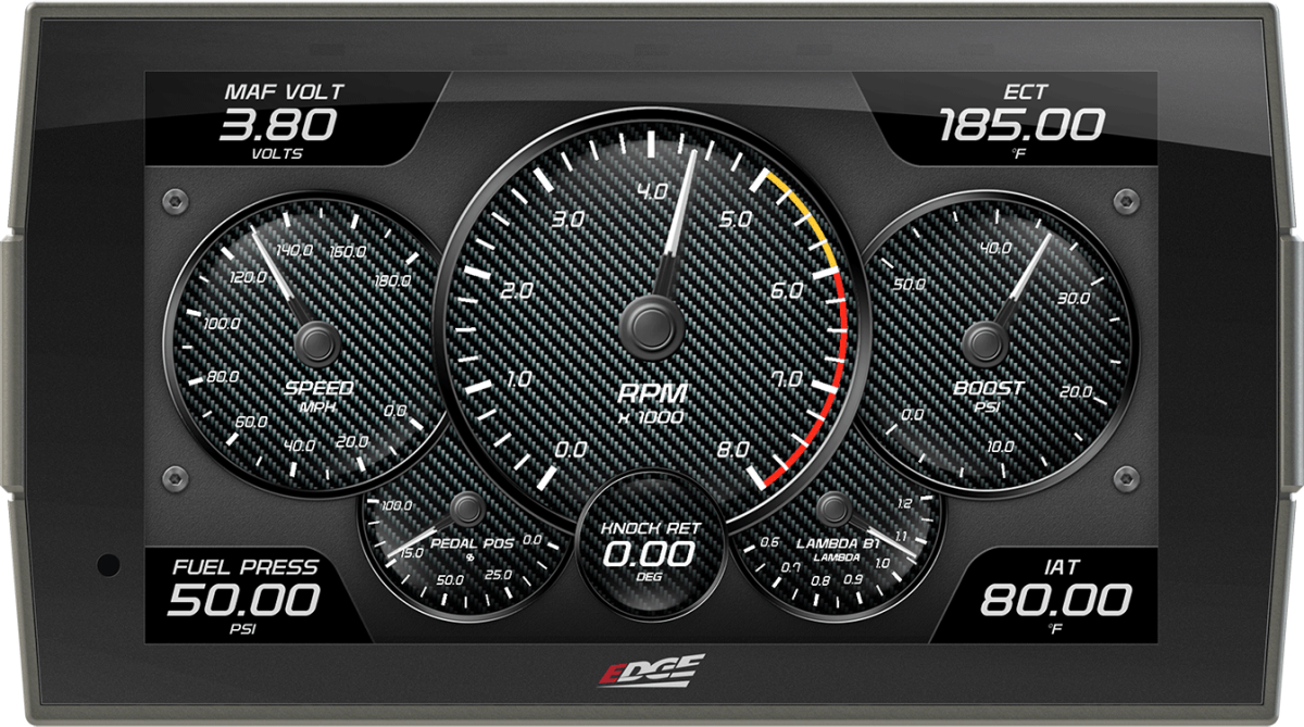 The Evolution CTS3 reprograms your vehicle's stock computer through the OBDII port of the vehicle. The Evolution is used to save the stock files from the vehicle's computer and then upload the Edge calibrations into the vehicle's computer. This product comes with multiple power levels custom tuned by a team of engineers and can be installed in minutes without ever popping the hood. The Evolution greatly increases horsepower and torque and not only does it re-tune your vehicle, but it also stays mounted in the cab of the vehicle and features real-time, monitoring of vital engine and vehicle data for a complete gauge package.