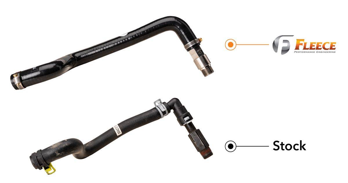 Eliminate the troublesome and leaky quick-connect heater core line on your 2003-2024 RAM with the latest OEM+ solution from Fleece Performance! This stainless steel fitting and silicone hose kit is a direct replacement for the problematic stock hose and quick-connect style fitting, providing you with a reliable solution to fix the leaks once and for all. Includes Permatex thread sealant and two new hose clamps.