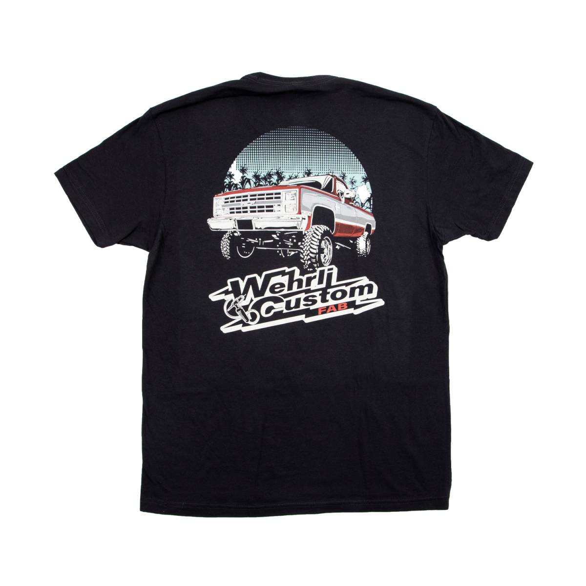 Black Bandit T-Shirt. Features a WCFab logo with TIG torch on the front. Back of t-shirt features square body truck with corn.