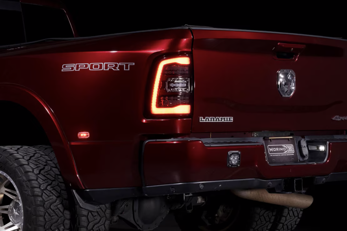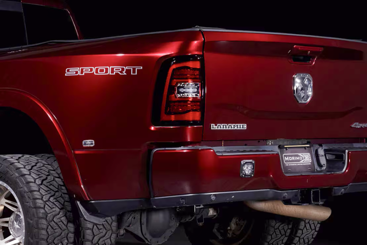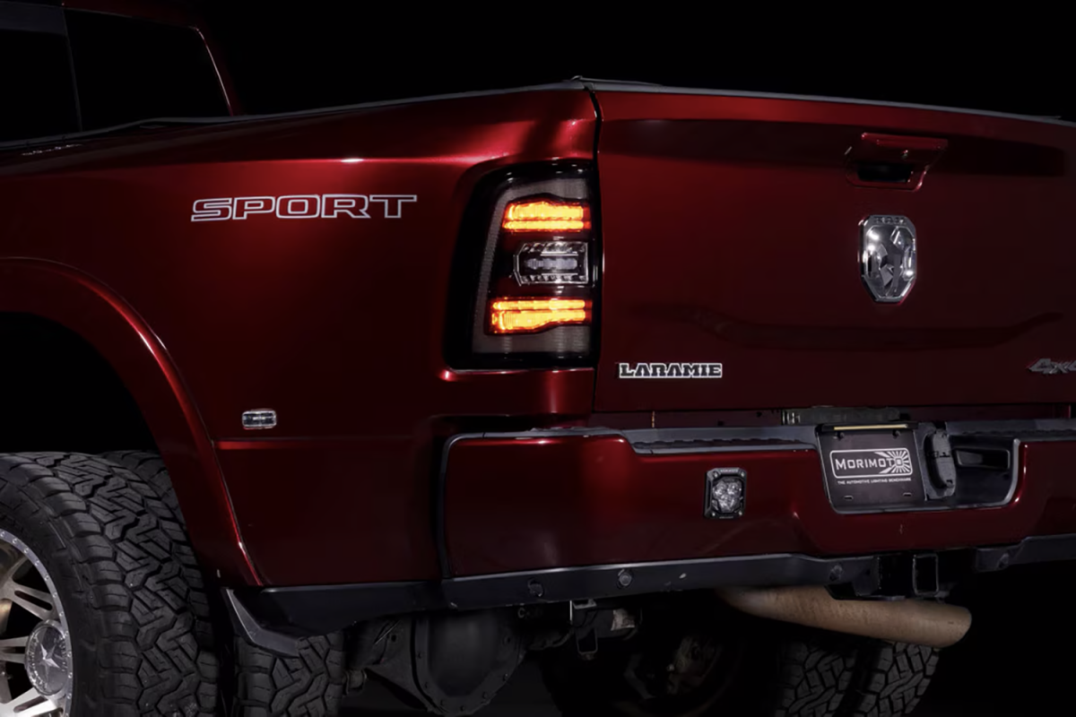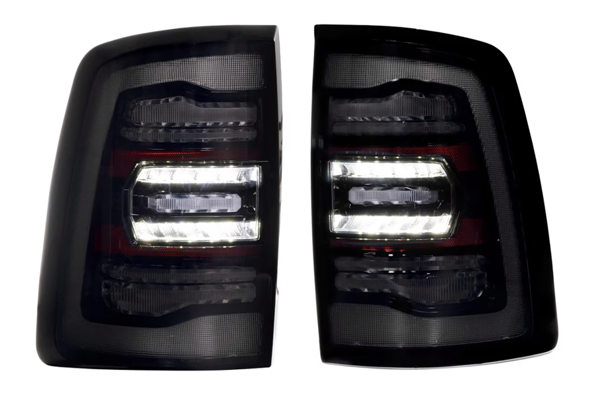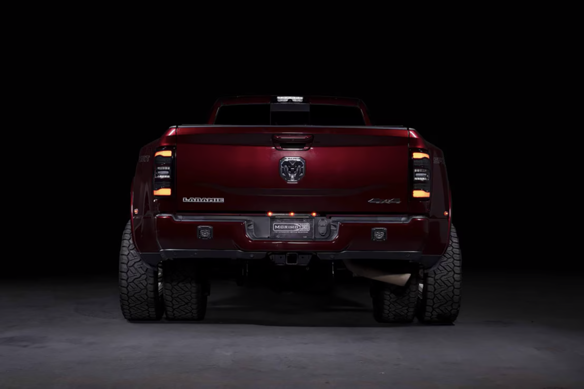 When it comes to style, performance, features, quality, and compatibility, the Morimoto XB LED tail lights are the category killer that every Ram owner has been waiting for! Inspired by the design of the most modern OEM LED tail lights from the current generation Ram truck, these look right at-home on the rear end of the 5th gen HD. Two clusters of parallel 3D Optics are illuminated from the rear with integrated TIR optics and serve as the brake light and turn signal. While they come standard with powerful LED reverse lights, just wait, there's more! Morimoto's BLBB system allows you to plug n play with the optional LED Backup Boost Bar which mounts to the top of your license plate frame and provides an extra 2,700 lumens of controlled light output in reverse. Pair that with the surrounding muscular trim, optional smoked or red outer lens, and we've easily got what is the best-looking set of aftermarket tail lights on the road for the new HD Ram trucks!