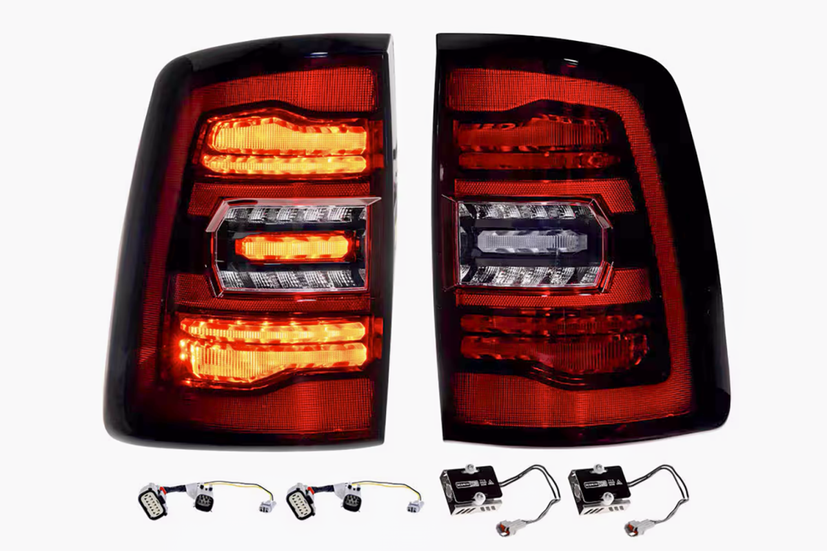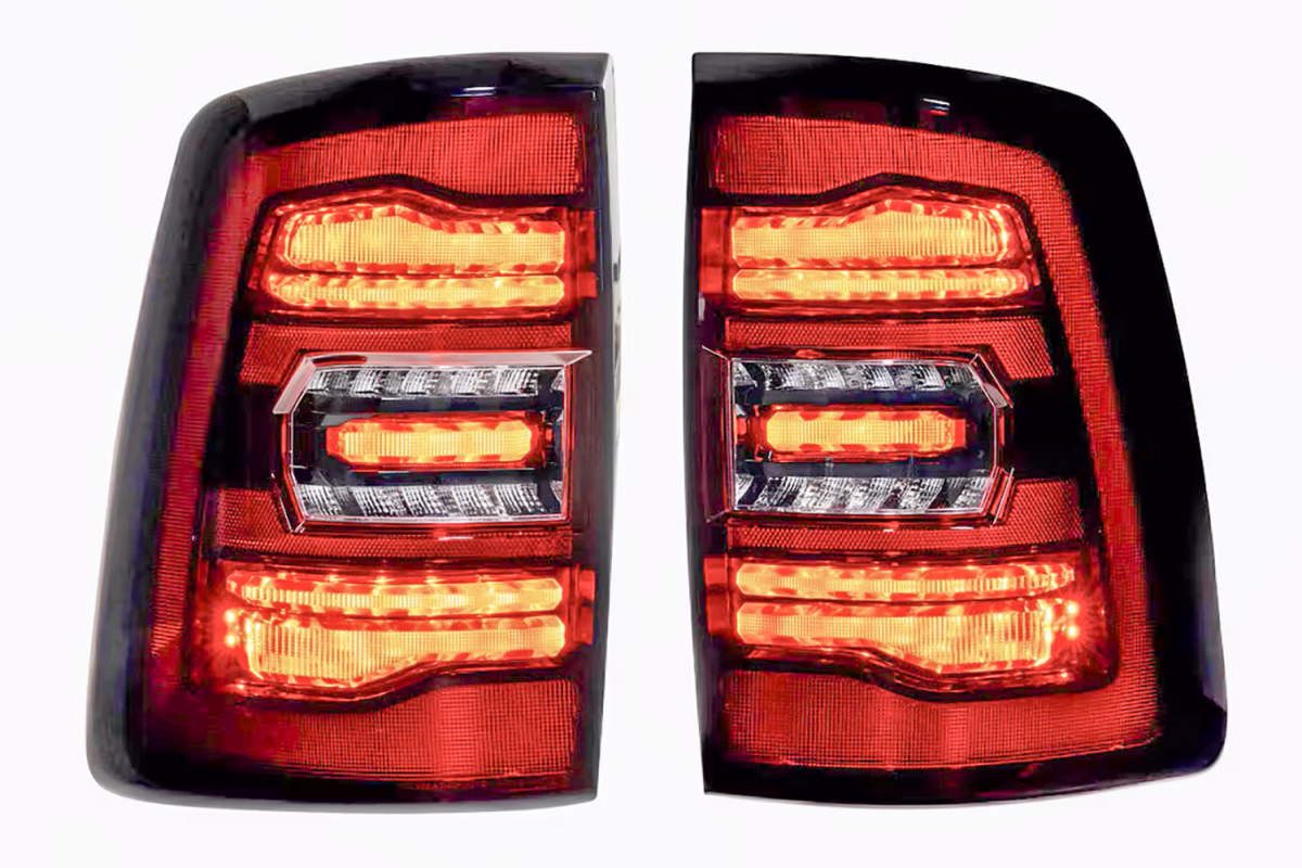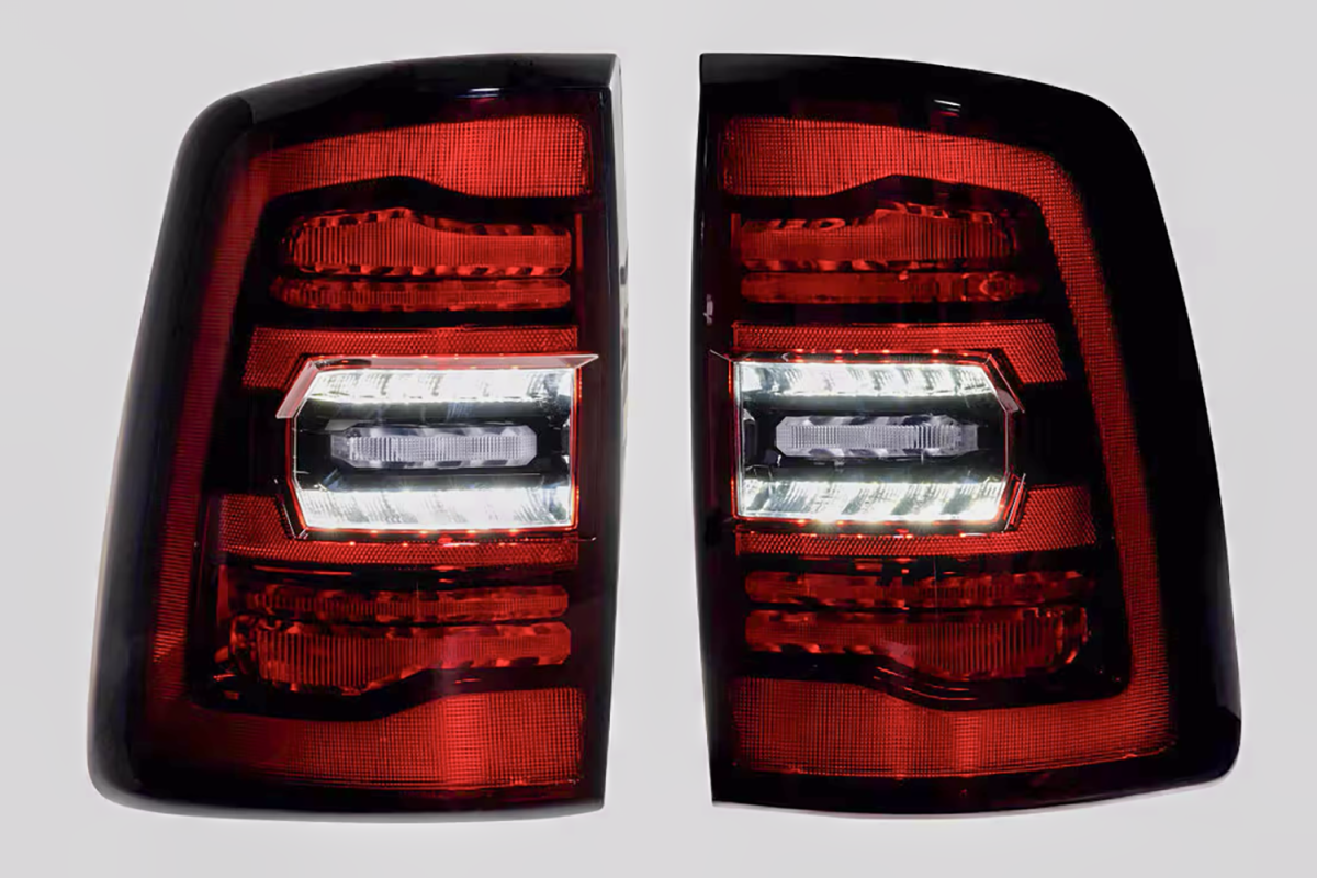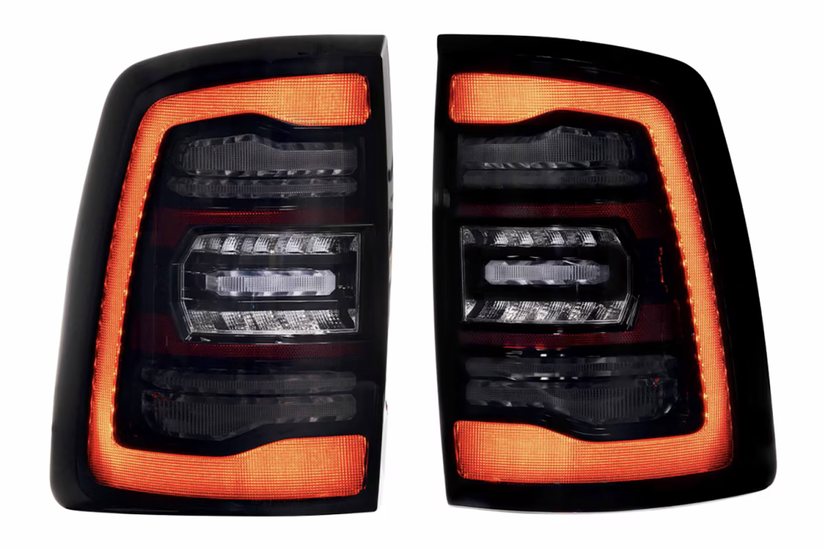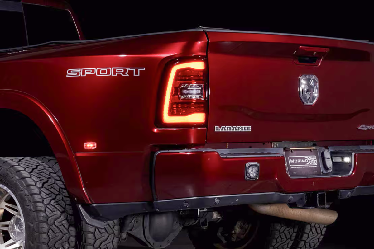 When it comes to style, performance, features, quality, and compatibility, the Morimoto XB LED tail lights are the category killer that every Ram owner has been waiting for! Inspired by the design of the most modern OEM LED tail lights from the current generation Ram truck, these look right at-home on the rear end of the 5th gen HD. Two clusters of parallel 3D Optics are illuminated from the rear with integrated TIR optics and serve as the brake light and turn signal. While they come standard with powerful LED reverse lights, just wait, there's more! Morimoto's BLBB system allows you to plug n play with the optional LED Backup Boost Bar which mounts to the top of your license plate frame and provides an extra 2,700 lumens of controlled light output in reverse. Pair that with the surrounding muscular trim, optional smoked or red outer lens, and we've easily got what is the best-looking set of aftermarket tail lights on the road for the new HD Ram trucks!