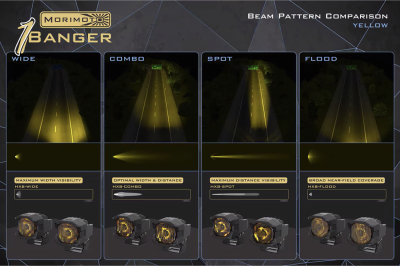 Performance: There are no "off the shelf" guts inside of a fancy housing here. Every element of the 1Banger is proprietary. LucidShape was used to optimize performance around the most modern, lumen-dense LEDs from Osram. Thermal dynamics have been optimized using SolidWorks. With white or yellow output and four distinct beam patterns (Wide/Fog, Spot, Combo, and Flood)--there is a 1Banger to suit every performance need and driving style.