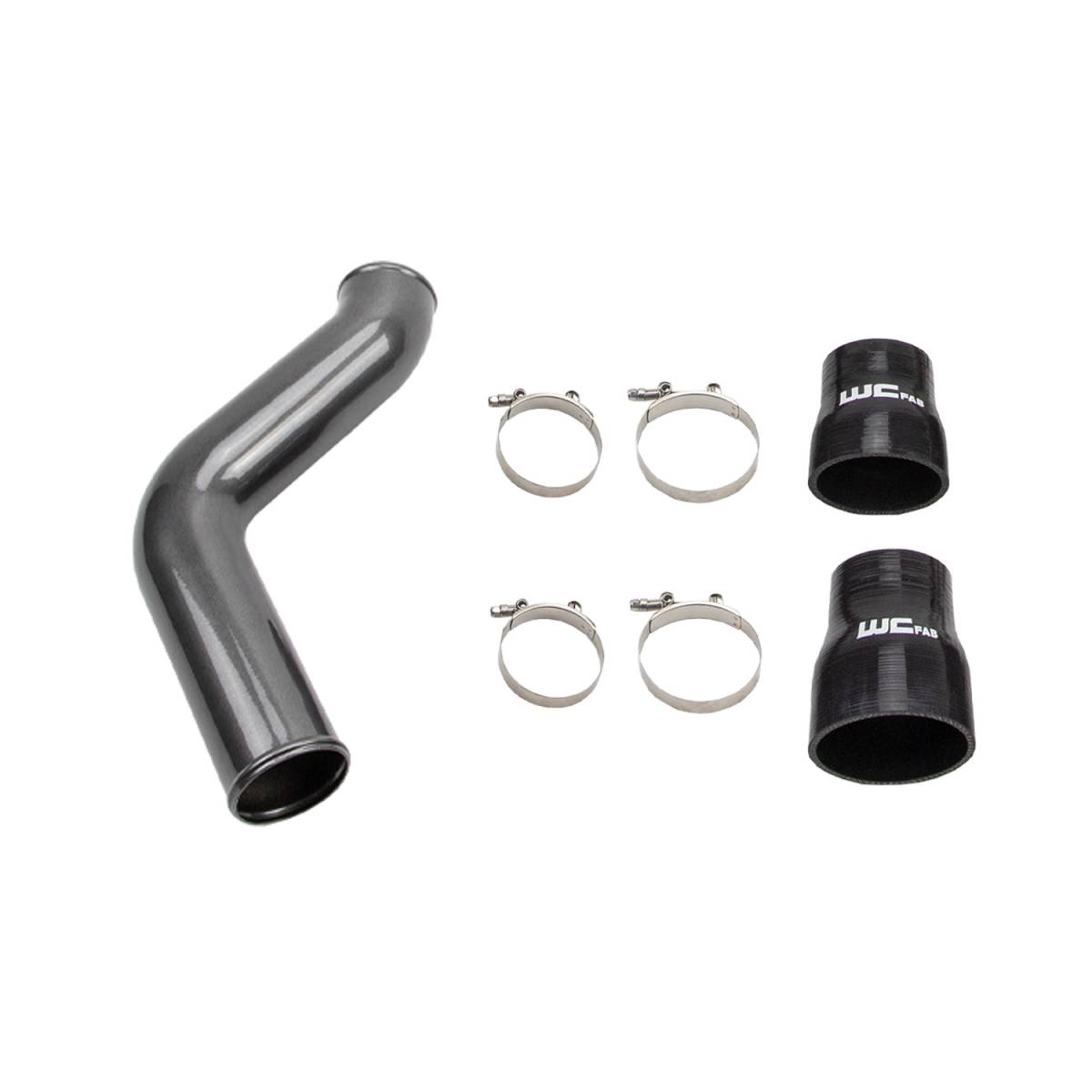 Replaces the poorly flowing, small diameter, crushed factory pipe with our heavy duty, high flowing 3.5-inch diameter Pipe. The WCFab kit includes upgraded high-quality silicone straight boots that withstand higher pressure and temperatures than the OEM parts to increase reliability and eliminate blown factory boots. Made in the USA from high strength, heavy duty 14 ga. Aluminum tube with smooth, aerodynamic mandrel bends for increased durability and optimized flow.