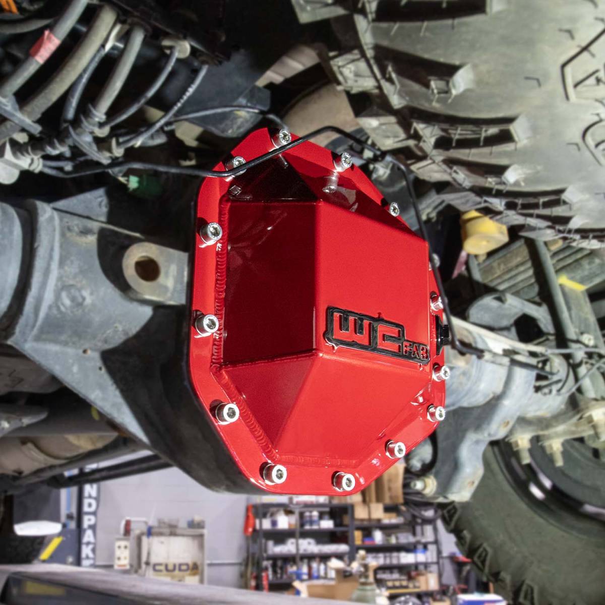 Fabricated Aluminum Differential Cover for Rear Axle on 2017-2024 Ford F-250 / F-350 6.7L Powerstroke Trucks equipped with Dana M275 Axle (4” OD axle tube, 10.8” Ring gear). Comes finished in your choice of WCFab's signature custom powder coat colors for a look as unique as your truck.