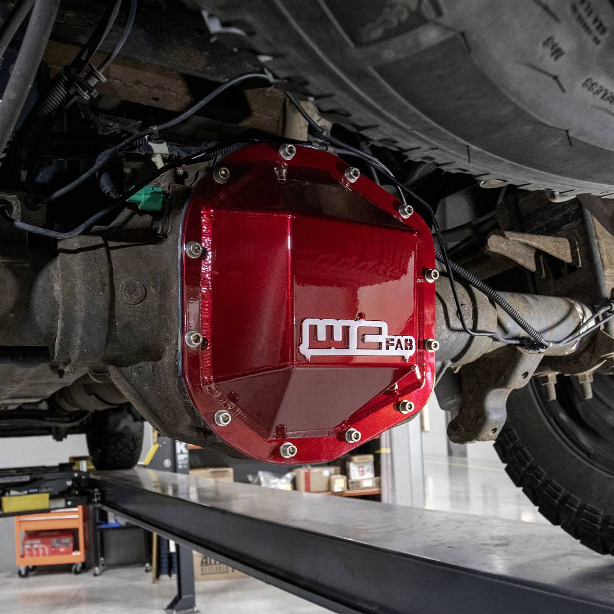 Fabricated Aluminum Differential Cover for Rear Axle on 1999-2024 Ford F-250 / F-350 7.3L, 6.0L, 6.4L, and 6.7L Powerstroke Trucks equipped with Sterling 10.5" Rear Axle (3.5” OD axle tube, 10.5” Ring gear). Comes finished in your choice of WCFab's signature custom powder coat colors for a look as unique as your truck.