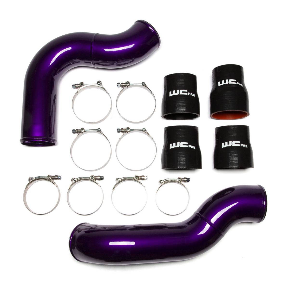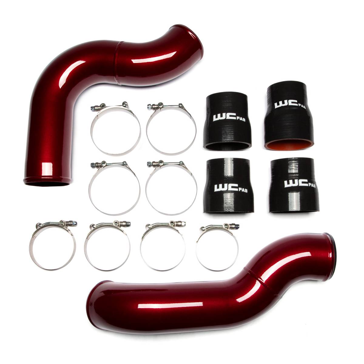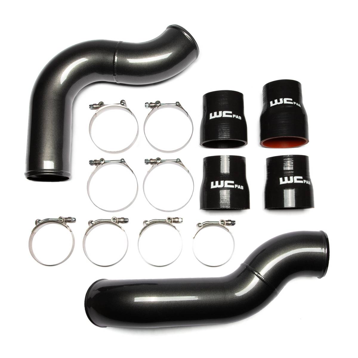 Replaces the poorly flowing, small-diameter, crushed factory pipes with our heavy-duty, high-flowing 3.5-inch diameter Pipes. The WCFab kit includes upgraded high-quality silicone straight boots that withstand higher pressure and temperatures than the OEM parts to increase reliability and eliminate blown factory boots. Made in the USA from high-strength, heavy duty 14 ga. Aluminum tube with smooth, aerodynamic mandrel bends for increased durability and optimized flow.